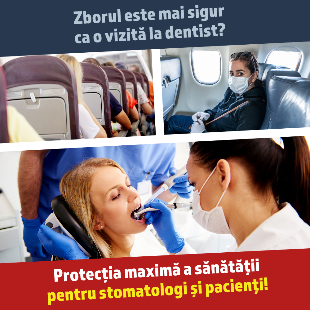 Pericolul Corona: zborul este mai sigur decât o vizită la dentist? Suntem de părere că am găsit o soluție pentru această întrebare! Protecție maximă a sănătății pentru medicii stomatologi și pacienți