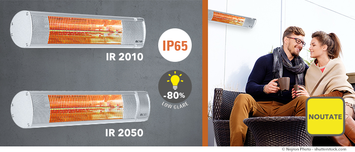 Dacă cumva vă beți vinul pe o terasă încălzită la lumina unei lumânări înseamnă ca aveți deja: noile radiatoare cu infraroșu IR 2010 și IR 2050 sunt livrabile. Ele reduc cu ca. 80% radiația de lumină care este ades resimțită ca deranjantă la aceași intensitate de căldură de 100 %. Radiatoarele sunt stabile la orice vreme și pot fi utilizate pe orice terasă deschisă sau gradină.