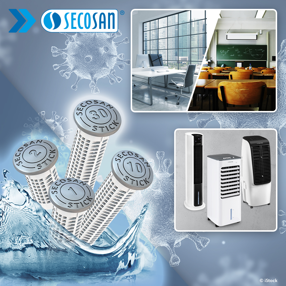 Risc tot mai mare de apariție a microbilor în rezervoarele de apă ale răcitorilor de aer atunci când este cald: SecoSan® Sticks garantează sterilitate luni întregi de zile