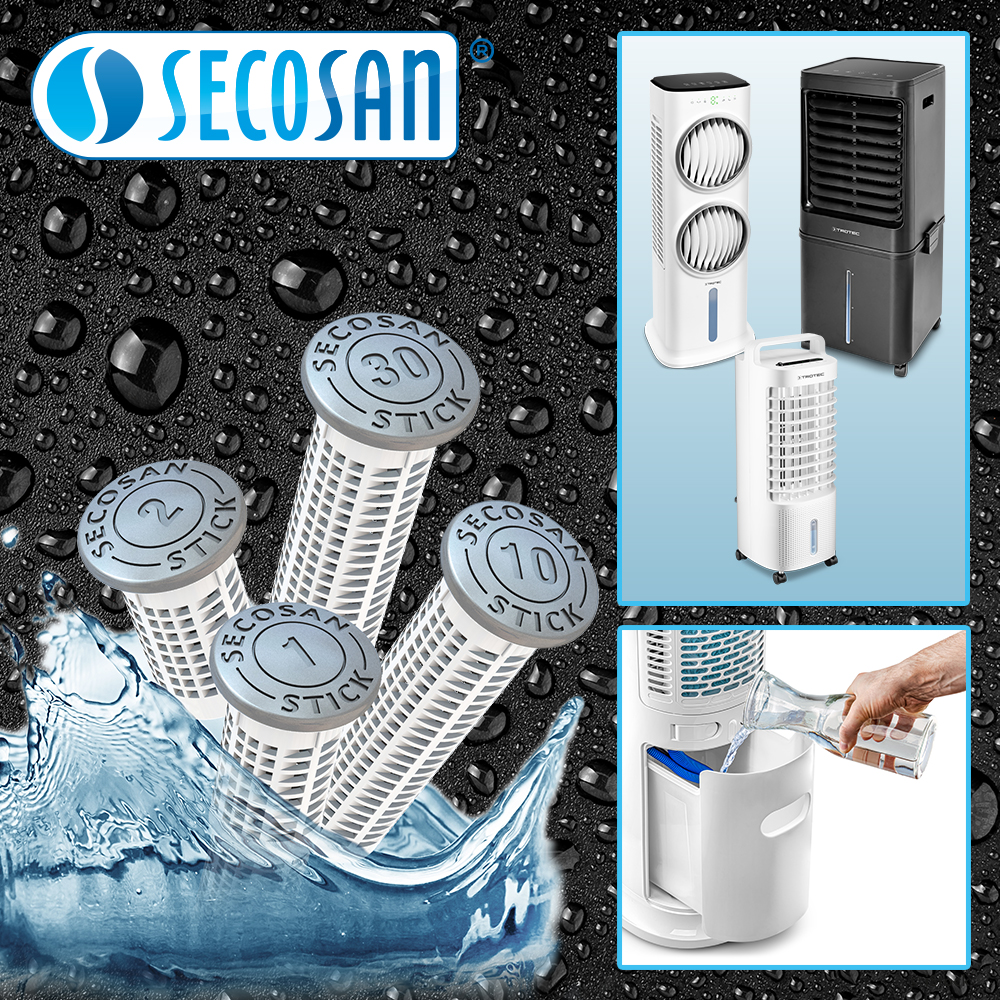 Când căldura pornește din nou, toată lumea caută o soluție. Pe de altă parte, răcitoarele de aer ajută prin răcirea lor naturală prin evaporare. La aceste dispozitive numai rezervorul de apă trebuie umplut cu apă rece de la robinet. Dar căldura însăși provoacă, de asemenea, probleme pentru apa din rezervoarele de stocare a apei: apa „se strică” mai repede din cauza căldurii și s-ar putea forma germeni și biofilm. Ca antidot adecvat, vă recomandăm să folosiți un stick SecoSan®, care menține apa permanent curată, limpede și fără germeni și mirosuri neplăcute.