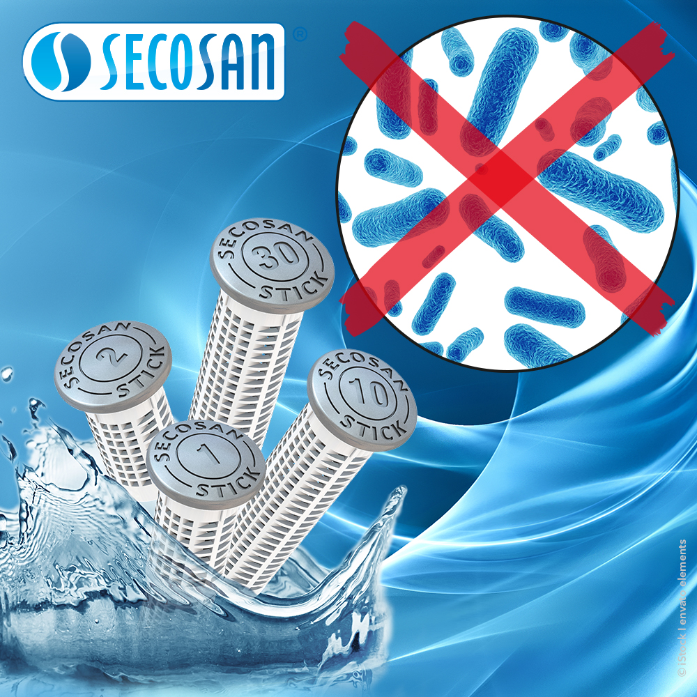 Canicula mărește pericolul formării de germeni în rezervoarele de apă ale răcitoarelor: Un singur stick SecoSan® păstrează apa proaspătă timp de 6 luni