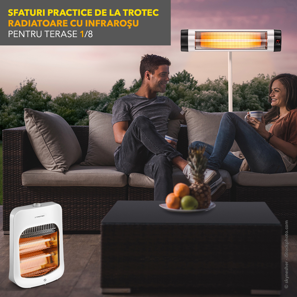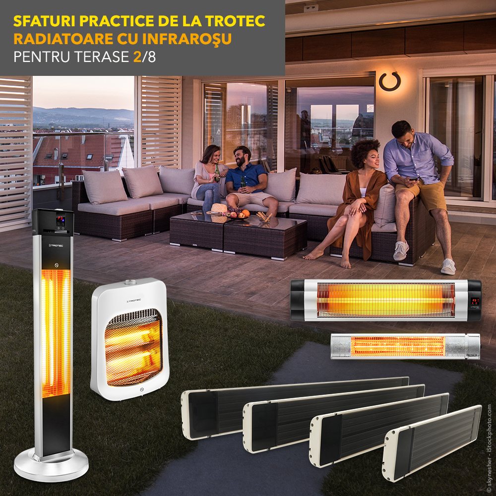 Pe viitor zilele devin din ce în ce mai scurte și serile mai reci. Pe terasă, de asemenea! Și veți realiza din nou că înăuntru este mai plăcut. Dar aceste nu este un motiv să părăsiți terasa. Nu pentru dumneavoastră, nu pentru oaspeții dumneavoastră și nu în anul 2019! De ce credeți că există radiatoarele moderne cu infraroșu de la Trotec? Cu astfel de aparate puteți savura serile afară având căldură plăcută în apropiere. Ce trebuie să aveți în vedere la achiziționarea lor, aflați aici în seria noastră de sfaturi practice de la Trotec.