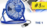 Bineînțeles ca ventilatorul TVE 1 nu e numai pentru locul de muncă lângă un PC. El se poate utiliza și la piscină sau la picnic, acolo unde aerul arde și în apropiere se află un racord cu USB. Acest ventilator vă conferă o briză răcoroasă cu o putere de  2,5 wați.