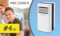 • Deasemenea prin simplă apăsare de buton de pe tabloul de comandă cu taste cu membrană de pe suprafața aparatului PAC 2300 X se poate transforma aparatul în dezumidificator cu o capacitate maximă de 1,0 litru pe oră. Prin funcțiunea de ventilator se poate aerisi în încăpere și fără cuplarea funcției de răcire. Ventilatorul are două trepte de viteză și o balansare variabilă pentru un curent de aer optimal.