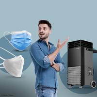 - Pe de o parte, concentrația de aerosoli din aerul din încăpere este diluată continuu în mod eficient cu aer pur filtrat de filtrul HEPA. În acest scop, purificatorul de aer are o performanță fără precedent de puritate ridicată, ceea ce permite o rată de schimb de aer de până la 20 de ori pe oră.
