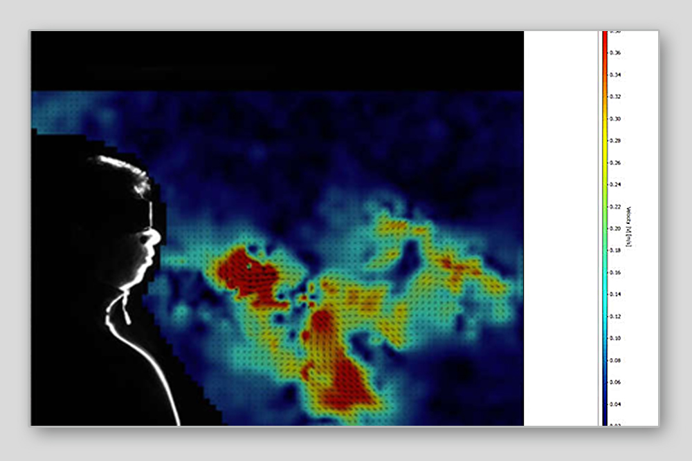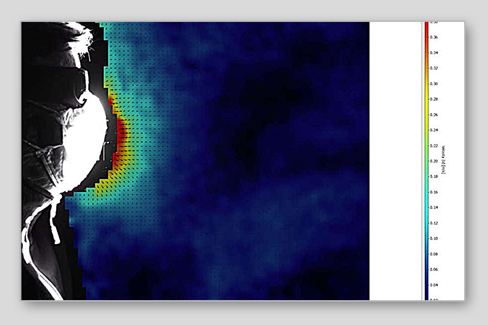 Christian Kähler a cercetat și vizualizat gama de expulzare a particulelor într-un studiu actual. Următoarele imagini arată respirarea cu și fără protecțiea gurii.