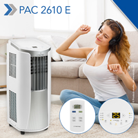 Un design frumos ce împachetează o tehnică confortabilă. Aparatul de climatizare PAC 2610 E a fost vara trecută unul dintre cele mai dorite aparate de climă de pe piață. Aparatul 3-în-1 oferă răcire, ventilare și dezumidificare într-un singur aparat. are o putere de răcire de 2,6 kW și cu ajutorul suflantei automate precum și trei trepte de ventilare, acesta suflă aerul fierbinte al verii din orice încăpere prin simpla apăsare pe buton.
