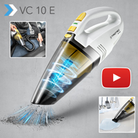 Cu ajutorul puternicului aspirator de mână VC 10 E aveți aparatul potrivit pentru umed și uscat de partea dumneavoastră. Cu o greutate de numai 700 grame aparatul se găsește la categoria cocoș dar din punct de vedere al performanței și dotării este un campion absolut. Aparatul deține destulă putere cu ajutorul acumulatorului cu litiu-ion de 7,4 volți care nu prezintă efecte de memorie și nu se descarcă de la sine. Astfel puteți aspira timp de 12 minute la puterea maximă. Secvența video despre produs vă informează acum ce poate acest mic aparat minune.