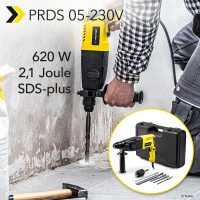 Ciocanul percutor PRDS 05-230V este livrat inclusiv mandrina cu prindere rapidă, daltă SDS, 3 burghie SDS, opritor paralel, mâner suplimentar precum și geantă de transport.