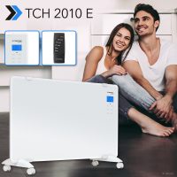 Dispozitivul practic de convecție TCH 2010 E face ca pornirea încălzirii principale să fie inutilă în zilele mai reci și, de asemenea, s-a dovedit a fi o încălzire de tranziție fiabilă înainte de începerea sezonului de încălzire. Convectorul de sticlă impresionează cu o putere de încălzire maximă de 2.000 de wați, comutabilă în două niveluri de încălzire (1.000 W și 2.000 W) și astfel oferă rapid căldură confortabilă. Apropo, convectorul din sticlă nu este doar din punct de vedere optic ci în mod general o soluție de vârf. Suprafața frontală a convectorului elegant de design este realizată din sticlă securizată – insensibilă la zgârieturi și deosebit de ușor de curățat.