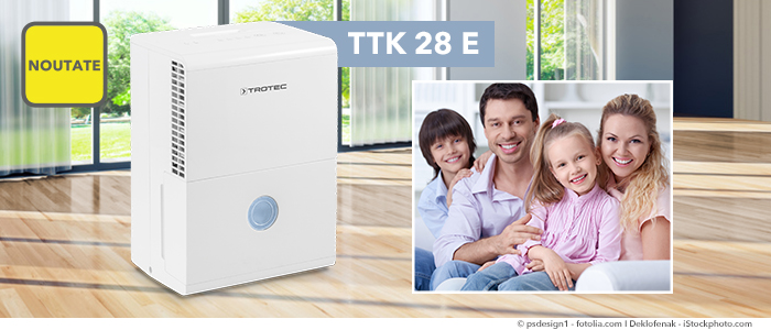 TTK 28 E este conceput pentru încăperi mici și este ca dimensiuni și el foarte compact și necesită puțin loc pentru amplasare. El este foarte ușor, astfel că se poate transporta fără efort dintr-o încăpere în cealaltă. Este dotat cu funcțiunile confortabile din clasa de dezumidificatoare TTK, astfel utilizarea sa devine o adevărată plăcere. Acum dacă se află din nou pe stoc, se pune doar întrebarea: aveți încăperi mici care au nevoie urgentă de uscare?