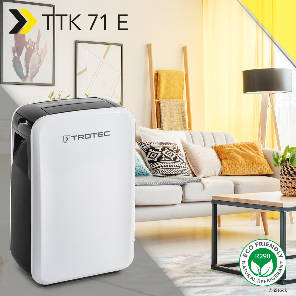 Profitați de calitatea de marcă de la Trotec ca un garant al înaltei valori, siguranțe și funcționalități. Comandați dezumidificatorul confort TTK 71 E la cele mai atractive condiții în magazinul nostru online – acum în Trotec-Shop!