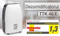 Dezumidificatorul casnic TTK 40 E a fost testat de revista germană Heimwerker Praxis. Rezultatul obținut: calificativul FOARTE BUN (nota generală 1,3), la raportul preț/calitate. Revista Heimwerker Praxis este cunoscută în Germania pentru testele profesionale pe care le execută, informând cititorii săi asupra produselor testate și rezultatele testelor. La funcționalitate, TTK 40 E a obținut 5 puncte din 6 posibile, la deservire și dotare, 4 din 6.  Reglarea aparatului e foarte simplă. Aparatul se deconectează automat, când e atinsă umiditatea setată. Puteți să îl lăsați să funcționeze colectând apa în rezervor, sau să montați un furtun, pentru evacuarea directă a apei, într-o scurgere etc.