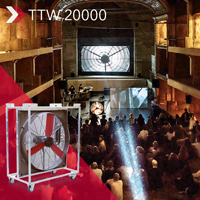 Indiferent dacă înscenați o piesă de teatru sau un concert întreg, un festival sau o manifestare sportivă – cu ajutorul mașinii noastre de vânt veți face din eveniment un moment de neuitat. TTW 20000 se poate stivui nu numai în depozit , ci chiar și pe timpul funcțiunii sale ventilatorul se poate stivui multiplu. În acest mod se pot instala adevărate fronturi de curent cu un debit considerabil de aer.  Construit stabil și robust, și datorită zăbrelelor de protecție precum și roților calitative de transport dotate cu fixare, acest ventilator axial puternic e fiabil, reprezentând o valoare stabilă.