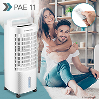 Aircooler PAE 11 lucrează simplu și eficient prin evaporarea naturală după principiul cu filtre tip fagure (tehnologia Honeycomb). La nevoie puteți ridica puterea de răcire adăugând în rezervorul  de apă cele două acumulatoare de răcire din furnitura răcitorului sau adăugâng cuburi de gheață.  Răcitorul se poate utiliza fără să cuplați funcția de răcire și ca ventilator care poate sufla în trei trepte de viteză. Direcția de suflare se poate regla vertical iar prin funcția de Swing orificiul de aerisire pendulează aerul pe direcție orizontală.