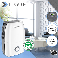 TTK 60 E deține o funcțiune automată de dezumidificare cu comandare prin higrostat și o funcție electronică de dejivrare. Valorile dorite de umiditate se pot seta pe tabloul de comandă în domeniul de umiditate de la 35 până la 80 % u.r. La tingerea valorii dorite de umezeală, compresorul se decuplează de la sine automat. La depășirea valorii, aparatul pornește automat până reglementează din nou valoarea dorită.