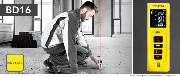Cu mare nerăbdare așteptat – în această săptămână avem în sfârșit telemetrul BD16 pe stoc! Rapid și deosebit de simplu, determinați distanțe, calculați sufrafețe și volumurile încăperilor, calculați necesarul pentru materialul de lucru, precum vopsele, parchet sau faianță.