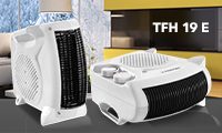 Datorită posibilității de a amplasa aeroterma atât vertical cât și orizontal, TFH 19 E este deosebit de flexibilă în utilizare acolo unde există și o priză de curent electric. Fie că doriți utilizarea ei în locuință, la birouri, în ateliere, la standuri piațale sau sere, aeroterma TFH 19 E convinge prin cei 2.000 wați pe care îi puteți cupla în două trepte. Această aerotermă este soluția ideală pentru anotimpul mai rece sau pentru perioadele dintre anotimpuri.