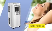 Datorită construcției sale compacte și a dotării confortabile, aparatul de climatizare PAC 2010 X se poate utiliza în orice încăpere de locuit și birou. Direcția de suflare o puteți îndrepta după bunul plac iar cele două trepte de ventilare la fel. Aparatul vă ajută să economisiți energie electrică prin clasa sa de energie A și funcțiunea de temporizator prin care puteți programa după necesitate aparatul setând ora de pornire și de oprire a aparatului. De exemplu pe timpul lucrului la servici lăsați aparatul în repaos și pe drum spre casă de la servici deja aparatul ar putea începe deja cu răcorirea încăperilor.