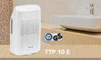 Cine dorește să păstreze uscate încăperi sensibile la umiditate precum dulapurile de haine și pantofi, cămările de alimente și încăperi sanitare fără ferestre, deține prin dezumidificatorul TTP 10 E o soluție compactă și inovativă. Aparatul nu necesită mult loc, dimensiunile sale nu sunt mult mai mari ca ale unei cutii de catron pentru pantofi iar în interiorul său lucrează un element termoelectric deosebit de silențios de tip Peltier, fără compresor și fără element de răcire!