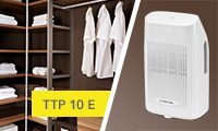 Dezumidificatorul Peltier TTP 10 E are dimensiuni atât de compacte încât aproape că nu necesită loc de amplasare, dimensiunile sale fiind undeva de mărimea unei cutii de pantofi. În interiorul său lucrează un element termo-electric deosebit de silențios de tip Peltier, fără compresor și element de răcire. Datorită tehnicii inovative termoelectrice s-a putut renunța la aceste elemente ceea ce face ca dezumidificatorul să fie de dimensiuni compacte. Dezumidificatorul Peltier TTP 10 E menține uscate încăperi mici de până la 10 m² uscate cu o capacitate de 750 ml zilnic.