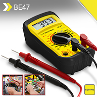 Datorită raportului atractiv dintre preț și performanță, multimetrul BE47 este o completare interesantă în dotarea meșteșugarilor casnici. Multimetrul corespunde categoriei de măsurare CAT II 600 V / CAT III 300 V și pe lângă funcțiunea de test de diodă și a bateriei mai deține și o funcțiune acustică de control al continuității și un indicator al nivelului de încărcare al bateriei. Cu ajutorului designului său ergonomic, aparatul este utilizabil cu succes în meșteșugăriea casnică și pentru hobby.