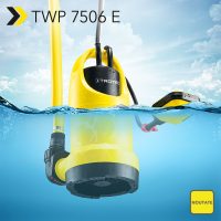Carcasa din plastic la fel de impermeabilă și rezistentă la impact a TWP 7506 E este proiectată pentru pomparea apei limpezi cu o adâncime de imersiune de până la 7 metri. Pompa submersibilă începe să pompeze apa de la un nivel de apă de 55 mm. Posibilitatea utilizării pompei în modul manual cu posibilitatea prestabilirii individuale a înălțimii de cuplare sau decuplare este deosebit de practică. În acest scop, carcasa pompei are o opțiune de fixare pentru a bloca întrerupătorul plutitor la o anumită înălțime. Dacă întrerupătorul plutitor care de obicei se mișcă liber, este fixat în blocare, TWP 7506 E pompează în mod de funcționare continuă.