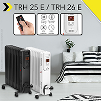 Cu o putere de încălzire de 2.500 wați, radiatoarele pe ulei TRH 25 E și TRH 26 E dețin puterea maximă de încălzire deja după 8 minute de la pornire și pot încălzi încăperi de până la 30 m². Datorită reglării puterii în trei trepte (1.000 W / 1.500 W / 2.500 W) radiatoarele livrează căldura comandate de termostat în domeniul de temperatura de la 15 – 35 °C. Uleiul termic din radiator salvează și păstrează căldura care se păstrează și după decuplarea aparatului până la 30 de minute.