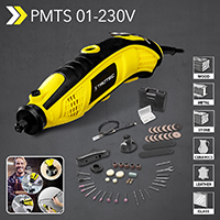 Chiar și atât de mică cât este ea, această unealtă poate practic totul: nu aveți nevoie decât de o unealtă care face scula multifuncțională PMTS 01-230V să lucreze în lemn, metal, bijuterii, mase plastice, piele, ceramică și sticlă. Fie că faceți lucrări filigrane și artistice sau de precizie la modelări în lemn, metal și aluminiu, la lustruirea și debavurarea marginilor sa pentru mici lucrări de înfrumusețare – scula multifuncțională și compactă și numărul de 85 de accesorii din furnitură oferă un număr foarte larg de posibilități.