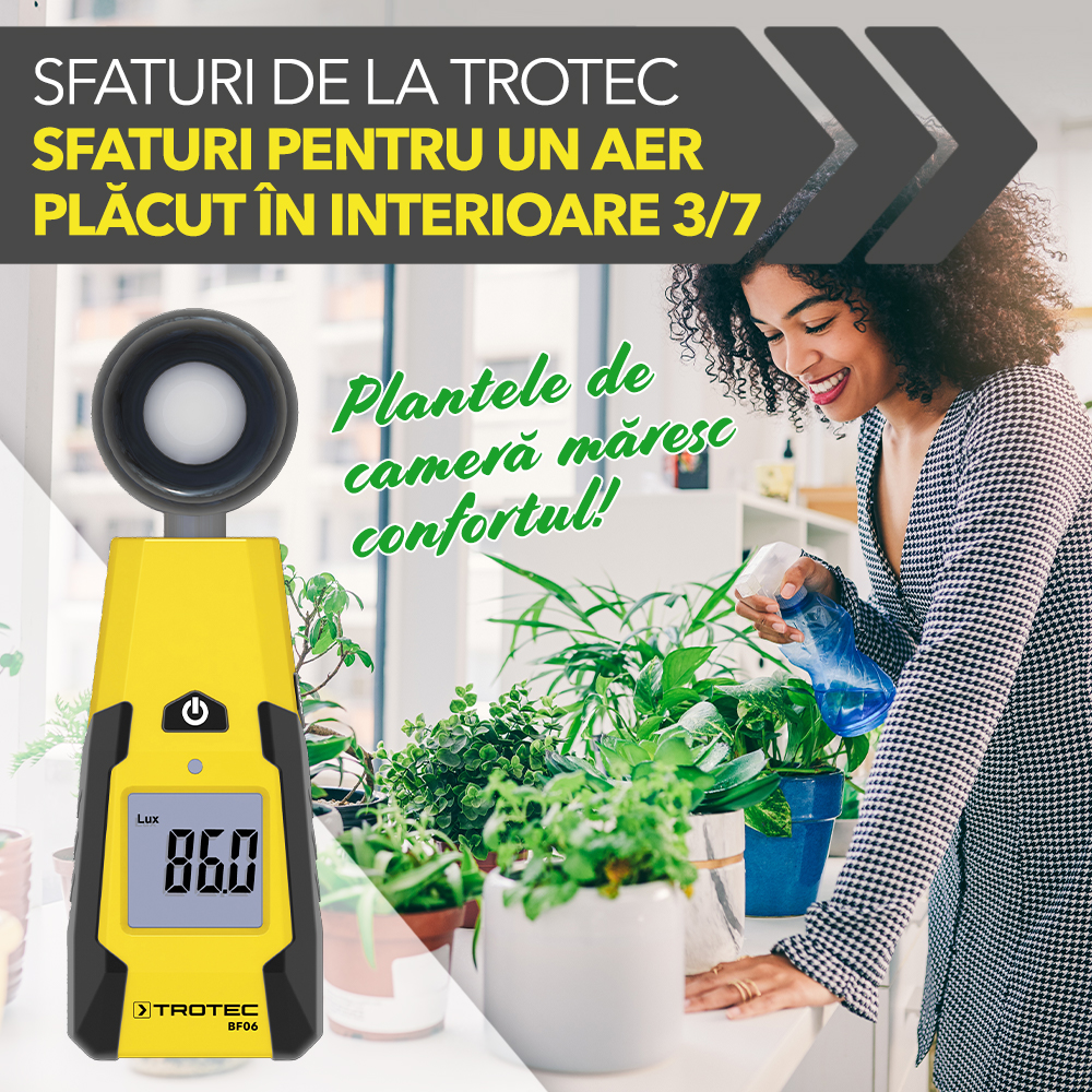 Tot ce putem face pentru plantele noastre , este să le udăm regulat și să le oferim condiții bune de lumină naturală. Pentru una există robinetul de apă și pentru cealaltă luxmetrul BF06 de la Trotec. Cu acest aparat de măsură puteți determina cantitatea de lumină ce cade pe plantele din încăpere. Astfel puteți interveni și îmbunătății condițiile climaterice oferind plantelor destulă lumină.