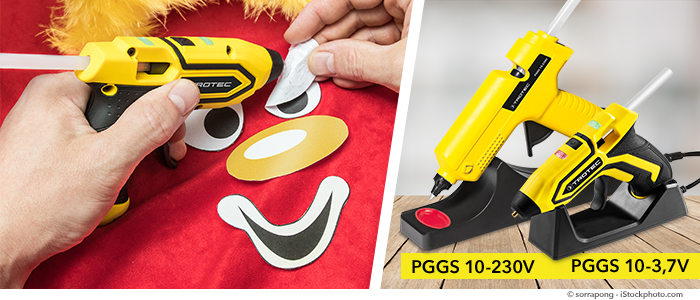 Un pistol de lipit cu lipici fierbinte este în totdeauna bine să-l aveți în casă. Trotec vă oferă direct două modele de marcă din seria noastră PGGS: pistolul electric PGGS 10-230V, care pentru o jumătate de oră îl puteți utiliza fără cablu și pistolul de lipic cu lipici fierbinte cu acumulator PGGS 10-3,7V care este permanent flexibil și mobil utilizabil.