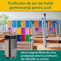 Altfel spus, purificatorul de aer transferă situația aerului de afară în situațiile din încăperile închise și completează acest lucru cu filtrarea extrem de eficientă și inactivarea virușilor.