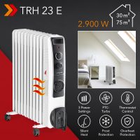 Radiator pe ulei TRH 23 E: căldură rapidă și ieftină datorită suflantei turbo și efectului de postîncălzire – din nou disponibil!