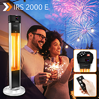 Radiatorul cu infraroșu design pentru terase IRS 2000 E deține destulă putere prin cei 2.000 wați pentru încălzirea standului din piața de crăciun sau pentru petrecerea de pe terasă. El este comutabil în trei trepte, cu ajutorul telecomenzii cu infraroșu. Aparatul livrează căldura sa plăcută, fără să orbească prin lumina radiată. Datorită tuburilor de încălzire cu infraroșu cu unde scurte, de mare calitate de tip Low Glare, radiatorul conferă în comparație cu radiatoarele cu infraroșu banale, o reducere de cu până la 80 % a luminii radiate, la o performanță de încălzire de 100 % . Acest lucru este optimal pentru ca în timpul petrecerii pe o terasă să puteți savura cerul plin de stele.