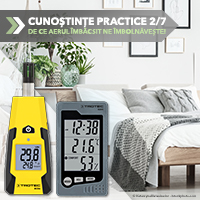 • În iarnă umiditatea crește în încăperi chiar dacă țineți ferestrele închise datorită faptului că cei ce se situează în încăpere, oamenii, animalele, plantele, elimină în permanență aburi de apă prin respirație. De aceea chiar și în perioada mai rece a anului este indicat să măsurați umiditatea regulat pentru că la ferestre se formează acele poduri de răceală pe care apa se condensează și favorizează formarea mucegaiului.