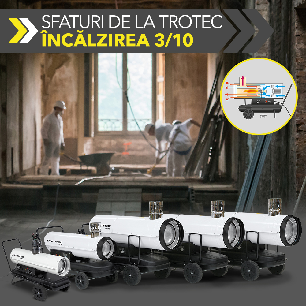Trotec calitate de marcă – aerotermele cu ardere indirectă cu combustibil lichid în toate clasele de performanță de la 20 KW până la 375 kW