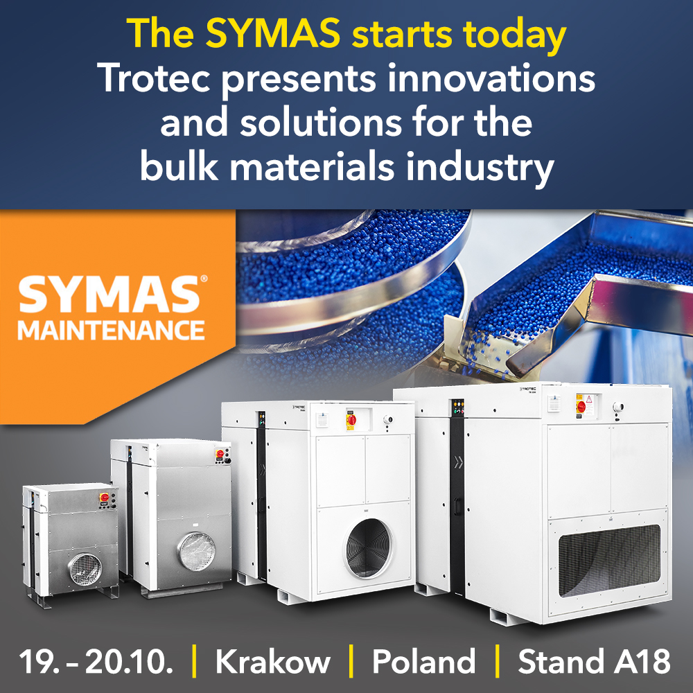 Începând de astăzi, Trotec va prezenta soluții inovatoare pentru industria mărfurilor în vrac la târgul comercial SYMAS din Cracovia (Polonia). Faceți cunoștință cu experții noștri la standul A18 și lăsați-ne să găsim împreună răspunsuri și soluții pentru provocările actuale și viitoare.