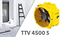 Trotecs nya kraftventilator TTV 4500 S är en intelligent lösning för sanerings- och byggföretag. Oavsett om det handlar om uppsnabbad byggtorkning, effektiv bortföring av damm eller effektiv luftväxling vid byggplatser, i lager eller verkstad, är den björnstarka axialfläkten ett förmånligt val.