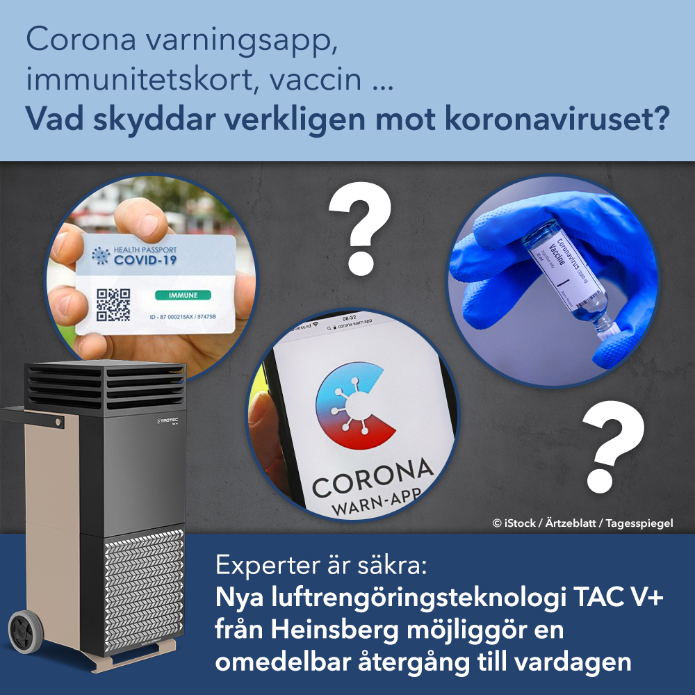 Luftrenaren TAC V+ minskar smittorisken förenad med corona inom industrin, handeln och ekonomin. För en säkrare återgång till det normala.