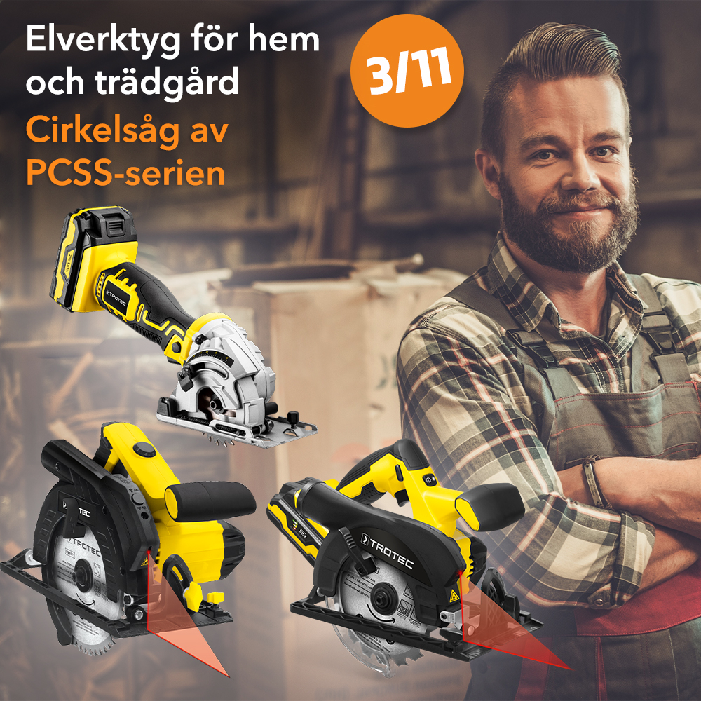 En handcirkelsåg ingår i alla passionerade hemmafixares basutrustning. Varhelst linjerna måste bli raka: det kan vara för möbelsnickeriet eller skärning av köksbänken. Sådana uppgifter gör du bäst med en handcirkelsåg. Trotec erbjuder tre övertygande toppverktyg för ändamålet: den batteridrivna minihandcirkelsågen PCSS 05‑20V, den batteridrivna handcirkelsågen PCSS 10‑20V samt handcirkelsågen PCSS 10-1400. En av dessa toppmodeller passar perfekt för dina utmaningar. Det lovar vi!