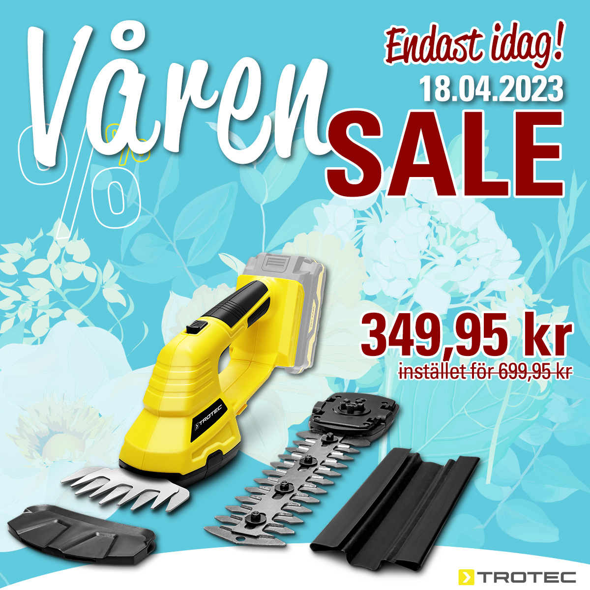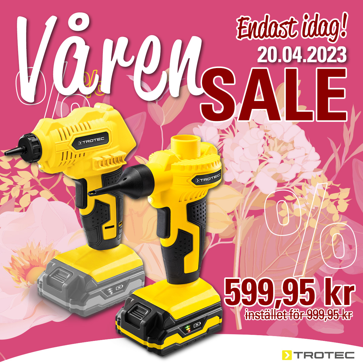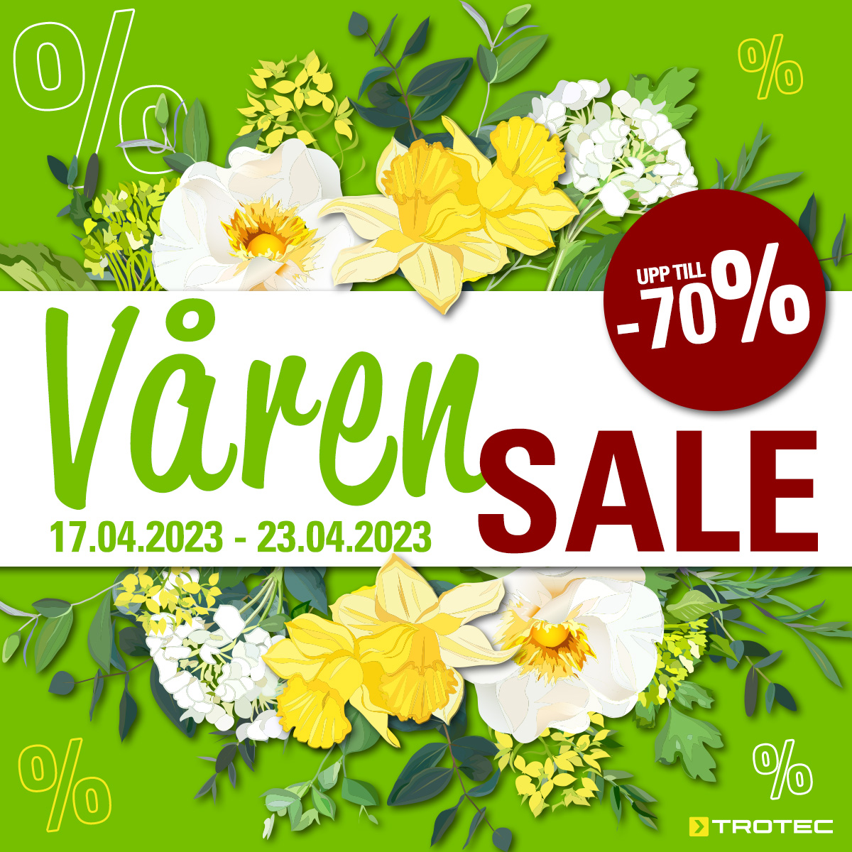 Vårutförsäljningen på Trotec börjar på måndag, 17.04.2023. Fram till den 23.04.2023, dvs. en hel vecka, kan du förvänta dig ett bra erbjudande varje dag. 😍