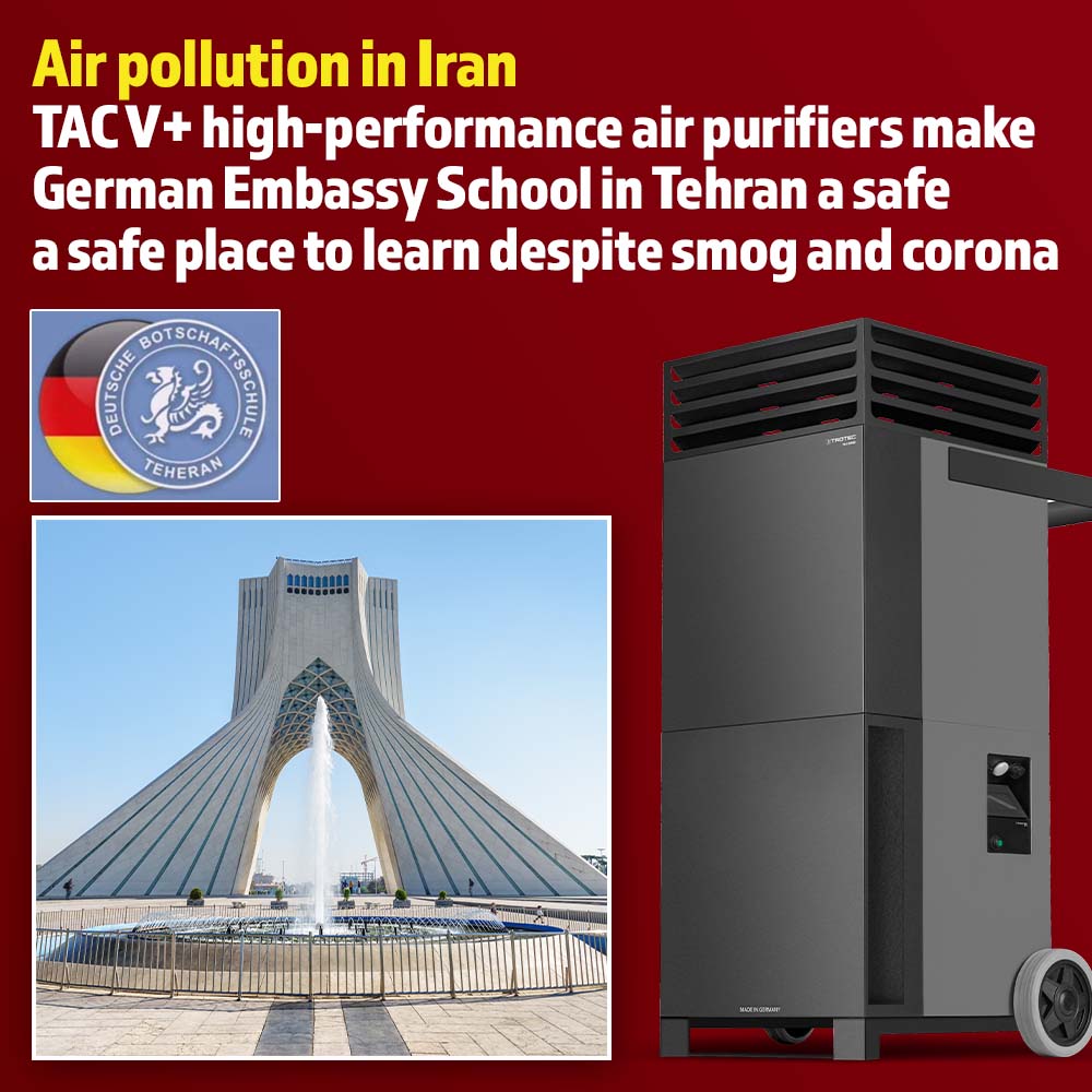 I kampen mot den globala coronapandemin förlitar sig den tyska ambassadens skola i Teheran på TAC-luftreningsteknik från Trotec som flögs in med flygfrakt från Tyskland som smittskydd för lärare och elever.