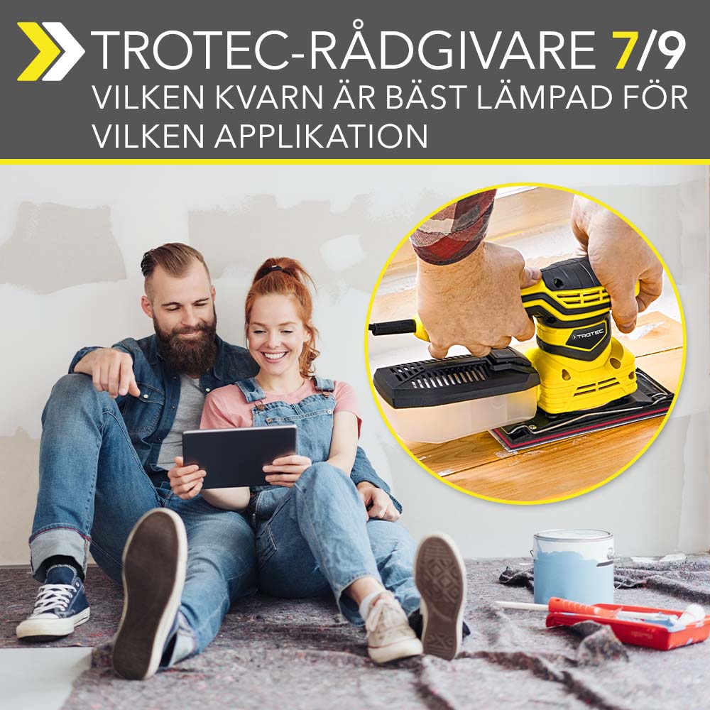 Så snart det grova sågningsarbetet i samband med trä- eller metallbearbetning är klart väntar nästa arbetsmoment. För en trähylla eller byrå vill ha så släta ytor som möjligt. Och för att uppnå det går det inte att komma runt behovet av ett slipverktyg. Se vilket slipverktyg som bäst lämpar sig för olika användningsområden och vilket du bör välja för att uppnå rätt slutresultat i dina projekt. Du får vad du behöver för detta i bästa märkeskvalitet från Trotec: Våra professionella slipmaskiner kommer till sin rätt för respektive uppdrag och garanterar exakta resultat.