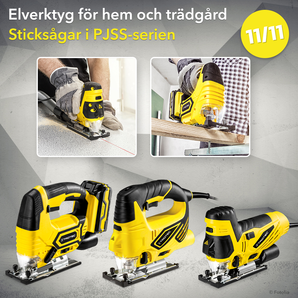 Vad kan en passionerad hemmafixare förvänta sig av sin nya sticksåg PJSS 12-230V ? Det första man måste göra är att anpassa sågen till alla krav. Detta visar sig bland annat på det perfekta samspelet med den kraftfulla 850 watts motorn och den tystgående körningen, det fyrfaldiga pendelslaget och det elektroniskt förinställda slaget. För det andra ska man alltid få maximal precision, ett bekvämt och säkert grepp och kunna använda sig av många flexibla funktioner när man sågar med det här verktyget vid sticksågsarbeten. Och för det tredje ska maskinen uppvisa den beprövade märkeskvaliteten från Trotec – i kombination med det sedvanliga oslagbart förmånliga priset.