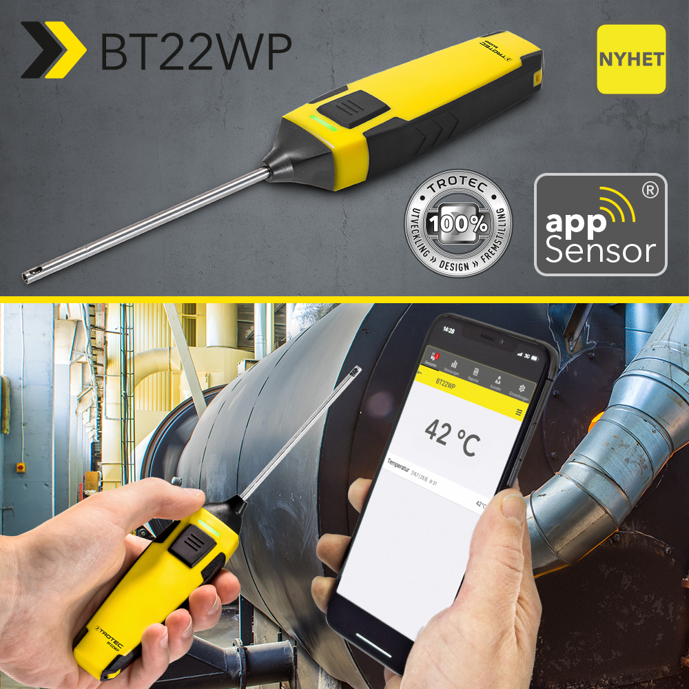 Är du ute efter ett sätt att smartare än någonsin kunna upptäcka oönskade temperaturavvikelser och fel i luftkanaler och luftschakt? Nu är det möjligt – den nya digitala Bluetooth®-termometern BT22WP gör VVS-tekniker, yrkesfolk och fastighetsskötare optimalt utrustade för temperaturmätningar i sådana områden. Mätutrustningen väger endast 90 g, kombinerar innovativ mätteknik på minsta möjliga plats, är mycket lätt att använda och rekommenderas även för kontroll och underhåll av bilars luftkonditioneringssystem.