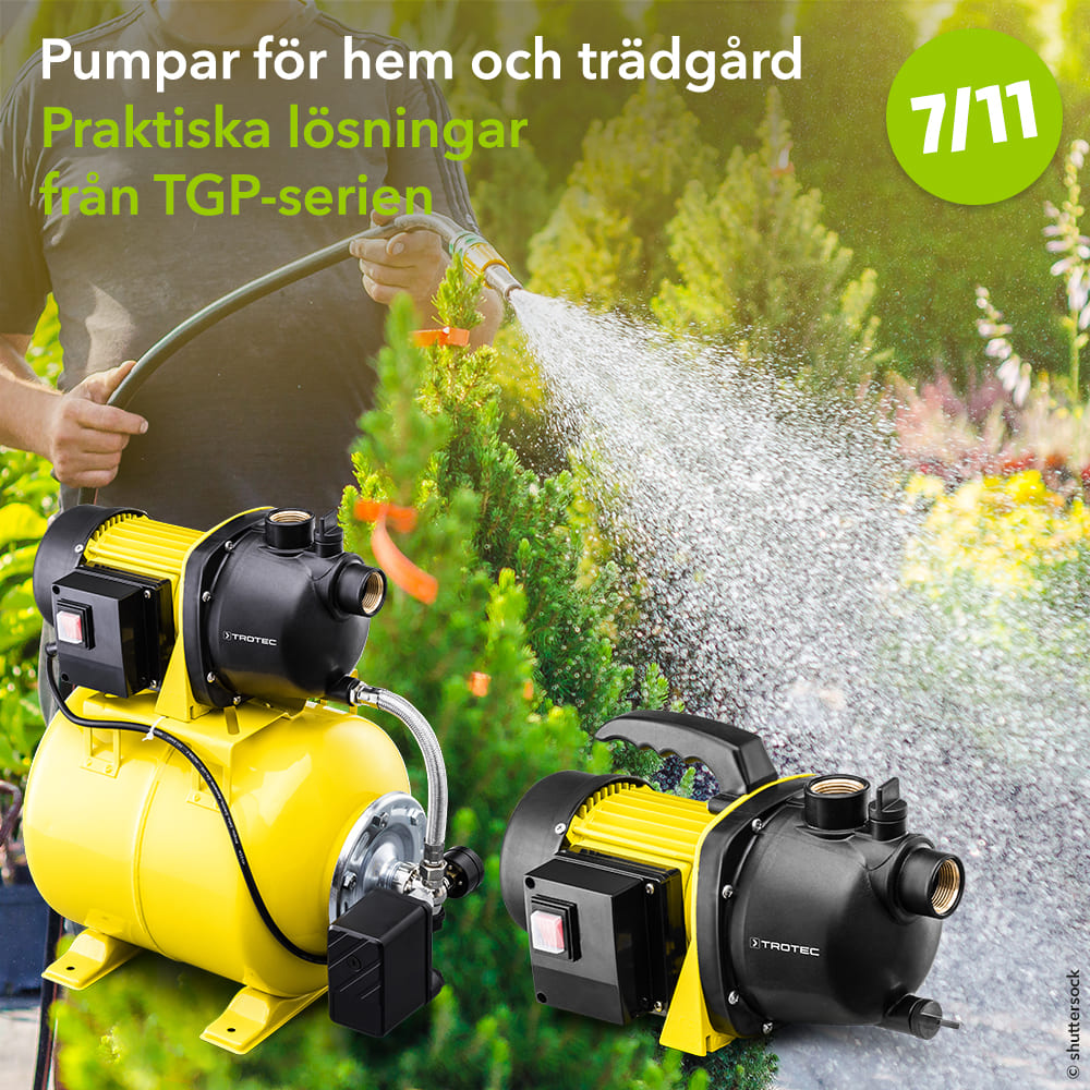 Lägligt inför sommarsäsongen kommer här ett hett spartips. Det går ut på att kan spara pengar på att använda gratis bruksvatten från din egen tomt, till exempel ur brunnen eller ett vattendrag, som ett utmärkt alternativ till bevattning av din trädgård eller för vattenförsörjning till tvättmaskinen eller toaletten. För detta behöver du en trädgårdspump eller, om du vill kunna använda bruksvattnet inomhus, ett hemvattenverk – Trotec erbjuder båda dessa praktiska lösningar med TGP-serien i sin flerfaldigt belönade märkeskvalitet.
