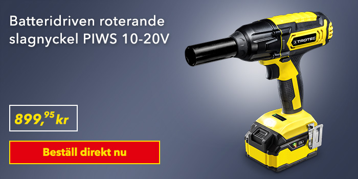 Ett däckbyte kostar omkring 1000 kr på en specialverkstad (inklusive däckförvaring). PIWS 10-20V sladdlös slagskruvmejsel kostar från 899,95 kr i Trotecs nätbutik. Anskaffningskostnaderna skrivs alltså av redan vid första däckbytet.