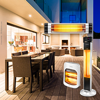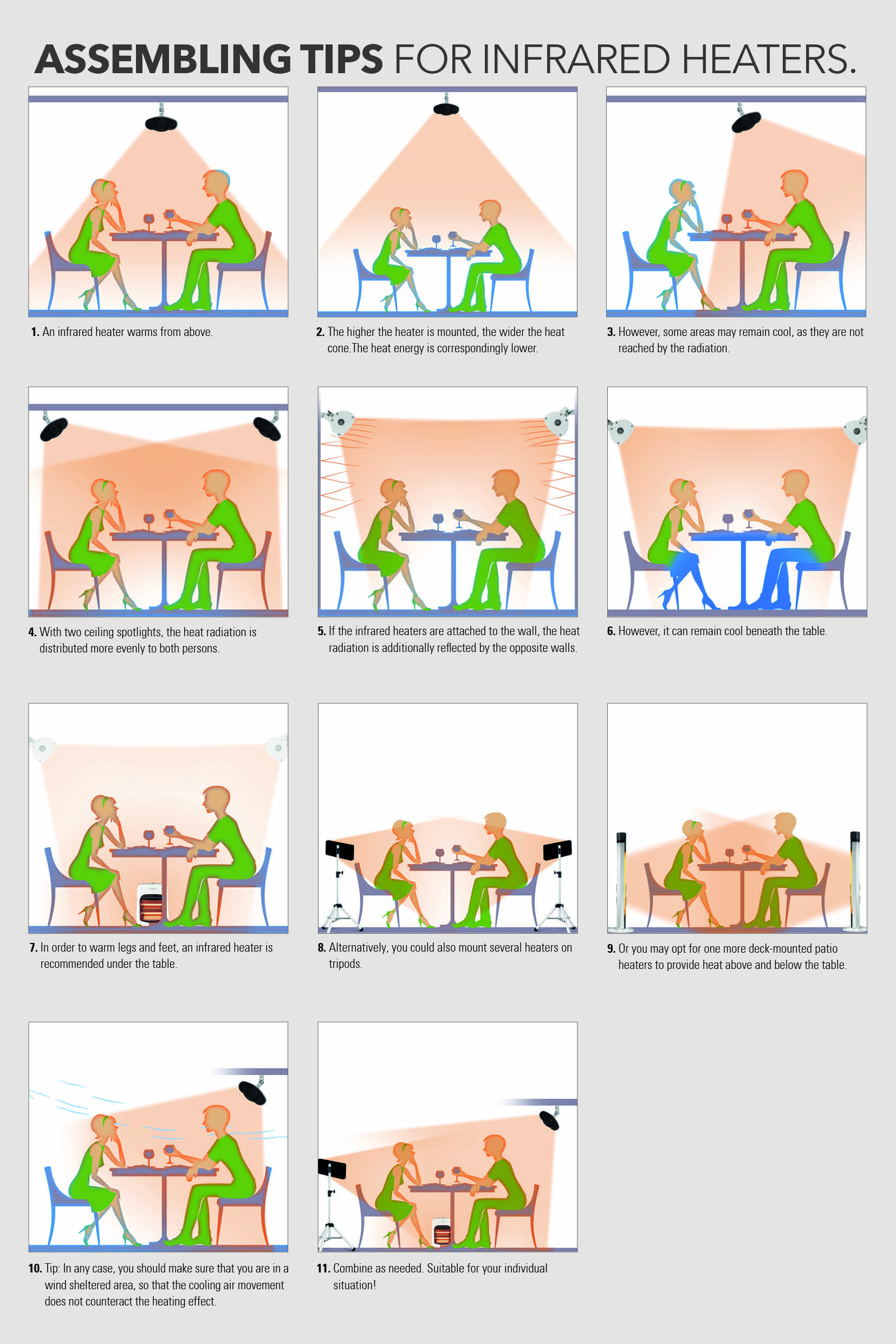 I dagens fjärde del i Trotec-guiden ”Infraröda värmestrålkastare för terrassen” presenterar vi två olika sätt att använda moderna värmestrålare på. Å ena sidan finns det infraröda strålkastare för vägg- eller takmontering som tar mycket lite plats, men som i så fall endast värmer upp det område som har fastställts i förväg. Annars kan man välja en mobil och uppställningsbar värmestrålkastare, som man visserligen kan flytta mellan olika användningsplatser, men som alltid är i behov av en uppställningsyta.