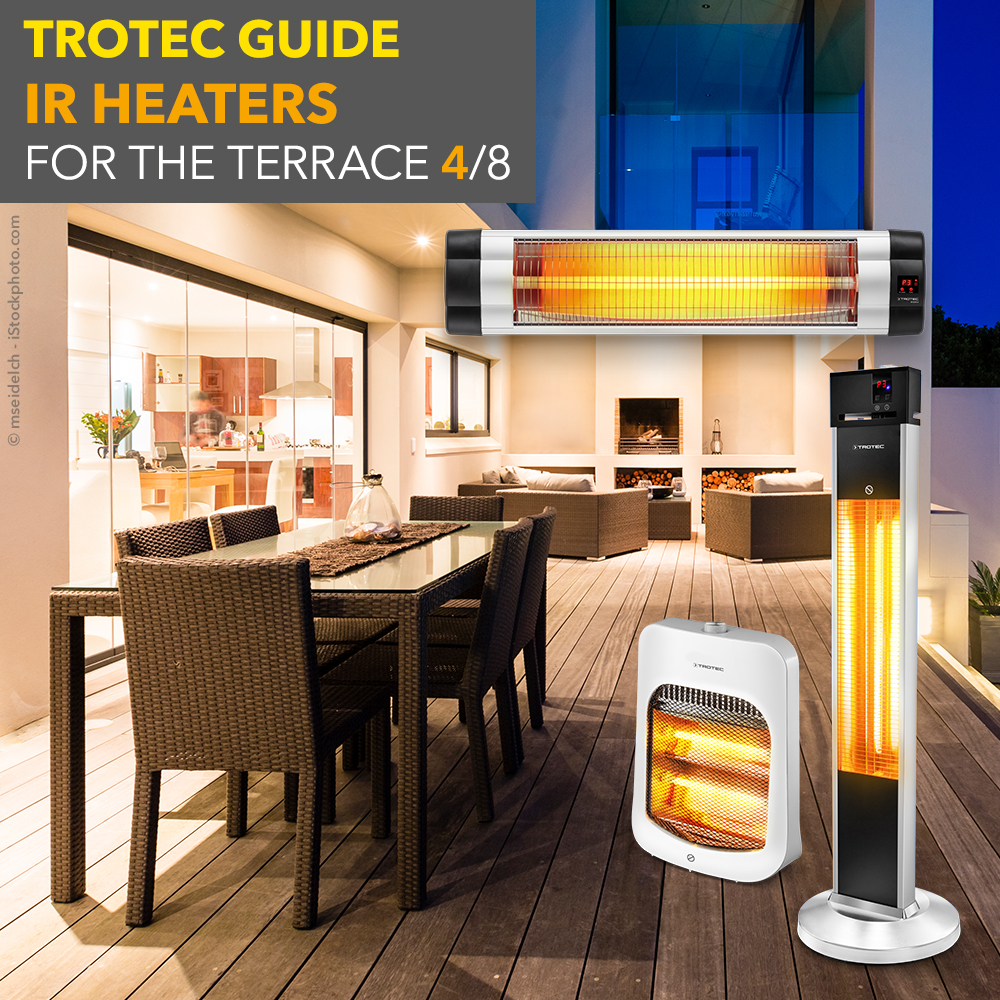 En översikt över Trotec-guiden ”Infraröda värmestrålkastare för terrassen”