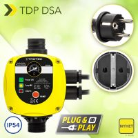 Den elektroniska tryckomkopplaren TDP DSA fungerar för nästan alla vanliga pumpystem utan egen tryckomkopplare. Du ansluter TDP DSA enkelt, tillförlitligt och praktiskt via Plug & Play i två steg: